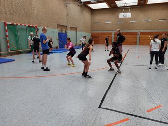 Um es der großen Zahl an interessierten Schüler*innen zu ermöglichen, die Ausbildung zu absolvieren, bedurfte es der Unterstützung bereits ausgebildeter Sporthelferinnen aus der Jahrgangsstufe 10. Außerdem besuchte die Jugend-Fachkraft der Sportjugend im KSB Borken, Annette Hülemeyer die Ausbildung und erklärte die Strukturen im Sportverein und die Einsatzmöglichkeiten für die angehenden Sporthelfer*innen.