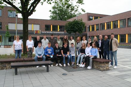 23 Schüler/innen der Q 1 der Irena-Sendler-Gesamtschule erhielten am letzten Schultag nach erfolgreichem Abschluss der Übungsleiter-C-Ausbildung Breitensport ihre Lizenzen. Der KSB-Präsident Wolfgang Reinert und die Jugendbildungsreferentin Annette Hülemeyer überreichten im Beisein der Schulleiterin Margot Brügger und des verantwortlichen Sportlehrers Sebastian Lohmeyer die Lizenzen und gratulierten den Schüler/innen ganz herzlich. Die ÜL-C-Ausbildung in der Gesamtschule wird in Kooperation mit dem KSB Borken umgesetzt. Auf diesem Wege sollen frühzeitig junge Nachwuchskräfte für die Sportvereine im Kreis Borken gewonnen werden und die Schüler/innen zugleich eine weitere Qualifikation zur Förderung ihrer Persönlichkeitsentwicklung erwerben. Der Projektkurs in der Q 1 richtet sich an junge Menschen, die sich im Besonderen dem Sport verbunden fühlen und sich darüber hinaus für das Fach Biologie begeistern können. Neben dem Fachwissen werden die sportbegeisterten jungen Leute dazu qualifiziert, Sportgruppen unterschiedlichen Alters in verschiedensten Sportarten kompetent anzuleiten und zu betreuen. Den neuen Übungsleiter/innen empfahl Wolfgang Reinert, ihre Kenntnisse im Breitensport aktiv in den Sportvereinen im Kreis Borken umzusetzen,sei es als Trainer, als Gruppenleiter oder als Vereinsmitarbeiter für organisatorische Aufgaben. Gerade in der jetzigen Zeit werden Übungsleiter/innen dringend in den Sportvereinen gebraucht, damit insbesondere Kinder wieder im Sportverein aktiv sein können. Frau Brügger dankte dem KSB Borken für die gute Zusammenarbeit und wünschte den Schüler/innen alles Gute für ihre weitere Übungsleiter/innen-Tätigkeit und viel Erfolg in der Q 2.
