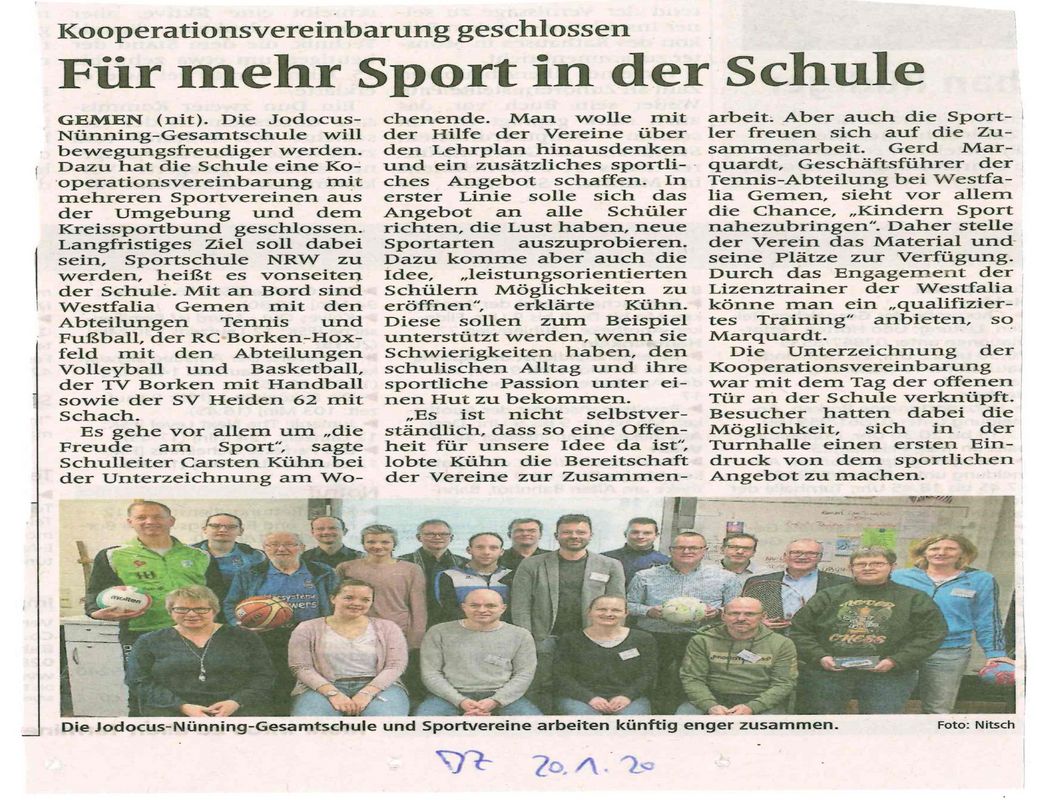 An der Jodocus Nünning Gesamtschule wird die 30-stündige Ausbildung in der Jahrgangsstufe 8 durchgeführt. Ab der 9. Klasse sind die Schüler/innen dann im Einsatz. „Die Sporthelfer/innen sind wichtig für unsere Schule, aber auch für Sportvereine, denn sie unterstützen die Sportangebote und übernehmen damit schon frühzeitig Verantwortung“ betonte Schulleiter Carsten Kühn. „Zudem ist es eine gute Vorbereitung für die ÜL-C-Ausbildung, die unsere Schüler/innen in der Oberstufe unserer Schule absolvieren können.“