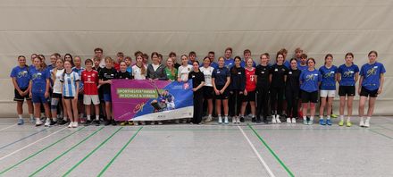 Vom 4 – 6. Februar 2025 haben 23 Schülerinnen an der Sporthelfer-Ausbildung Teil 1 teilgenommen, die von der Jodocus-Nünning Gesamtschule in Kooperation mit der Sportjugend im KSB Borken und dem Westdeutschen Volleyball-Verband (WVV) organisiert wurde. Die Kompaktmaßnahme „Sporthelfer Teil 1“, die in den Räumlichkeiten der Erlebniswelt Sport in Reken stattfand, ist der Auftakt für den weiteren Weg der Schülerinnen hin zur Trainer-C-Lizenz im Bereich Volleyball. Die Sportlehrkraft Mareike Kinder koordiniert dieses Projekt an der JNG Borken. Der nächste Schritt für die Schülerinnen ist die Teilnahme am Sporthelferzusatzmodul Volleyball (10 LE) und am Lehrgang „Sporthelfer-Volleyball II (20 LE)“. Beides wird kurz nach Karneval über den Westdeutschen Volleyball-Verband vor Ort angeboten. Mit der kompletten sportartspezifischen Sporthelfer-Ausbildung können die Schülerinnen dann an der Trainer-C-Ausbildung teilnehmen. Die Gruppe der Teilnehmerinnen setzt sich zusammen aus Schülerinnen des JNG, des Gymnasium Mariengarden, der Schönstätter Marienschule, dem Gymnasium Remigianum und dem Berufskolleg Borken. Alle kennen sich bereits aus dem Frühtraining an der JNG. Die Sportjugend im KSB Borken und der WVV freuen sich sehr über diese Projekt, durch das junge Menschen für die Laufbahn zur Übungsleiterin / Trainerin motiviert werden.