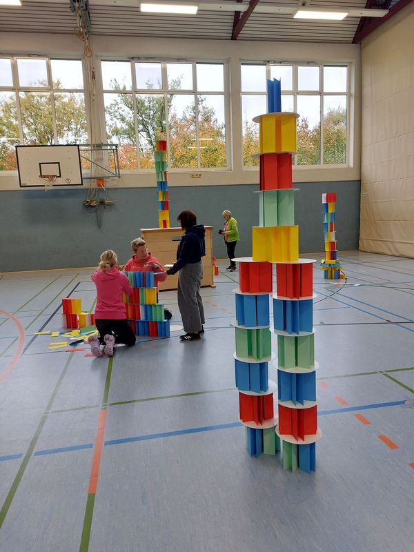 In den Workshops ging es um kreatives Bauen und Gestalten mit einfachen Materialien oder mit den Großgeräten der Sporthalle. Außerdem wurde praktisch erläutert, wie Brett- und Tischspiele in Bewegung umgesetzt werden können oder welche psychomotorischen Spieleideen es für draußen gibt. Bei den Ball- und Braingames fanden insbesondere Grundschullehrkräfte Anregungen für die Koordinationsförderung und die Verbesserung der exekutiven Funktionen. Ruhig und Entspannt ging es zu in den Workshops „Musik – Klang – Bewegung“ und „Vielfältige Entspannung für Klein und Groß“. Auch das Thema Inklusion wurde in der Fachtagung aufgegriffen und die Teilnehmer*innen erhielten spielerische Ideen zur Förderung der Inklusion in der Kita.